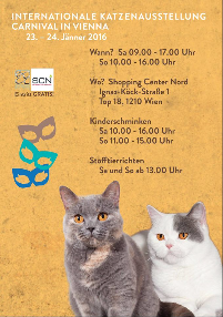 Am Samstag, 18.Juni 2016 werden wir in 2301 Wittau auf einer Katzenausstellung des Blue Danube Cat Club mit Action Cats A Rose of Love vertreten sein. Das erste Mal wird mein "Rosilein" in der Erwachsenenklasse gerichtet werden. Ich bin schon sehr gespannt!!