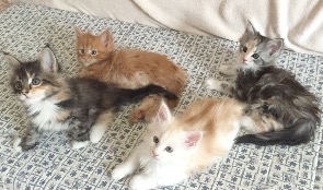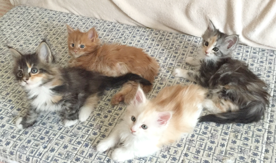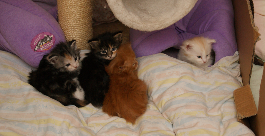 Unsere E-Kitten Eros, Evita, Estelle und Emil sind schon 7 Wochen alt und wiegen schon einen Kilo. Sie spielen sehr gerne mit den Schuhen und mit allem was sich bewegen lässt. Einfach ein tolles Kino, sie zu beobachten! Drei von den vier sind schon fix vergeben und ich bin dankbar, tolle neue Besitzer gefunden zu haben!